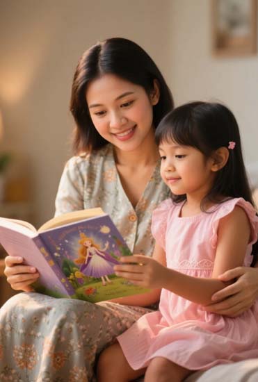 - Edukasi – Setiap dongeng membawa nilai pendidikan, bukan hanya hiburan. Dari cerita, anak belajar moral, logika, imajinasi, dan empati.